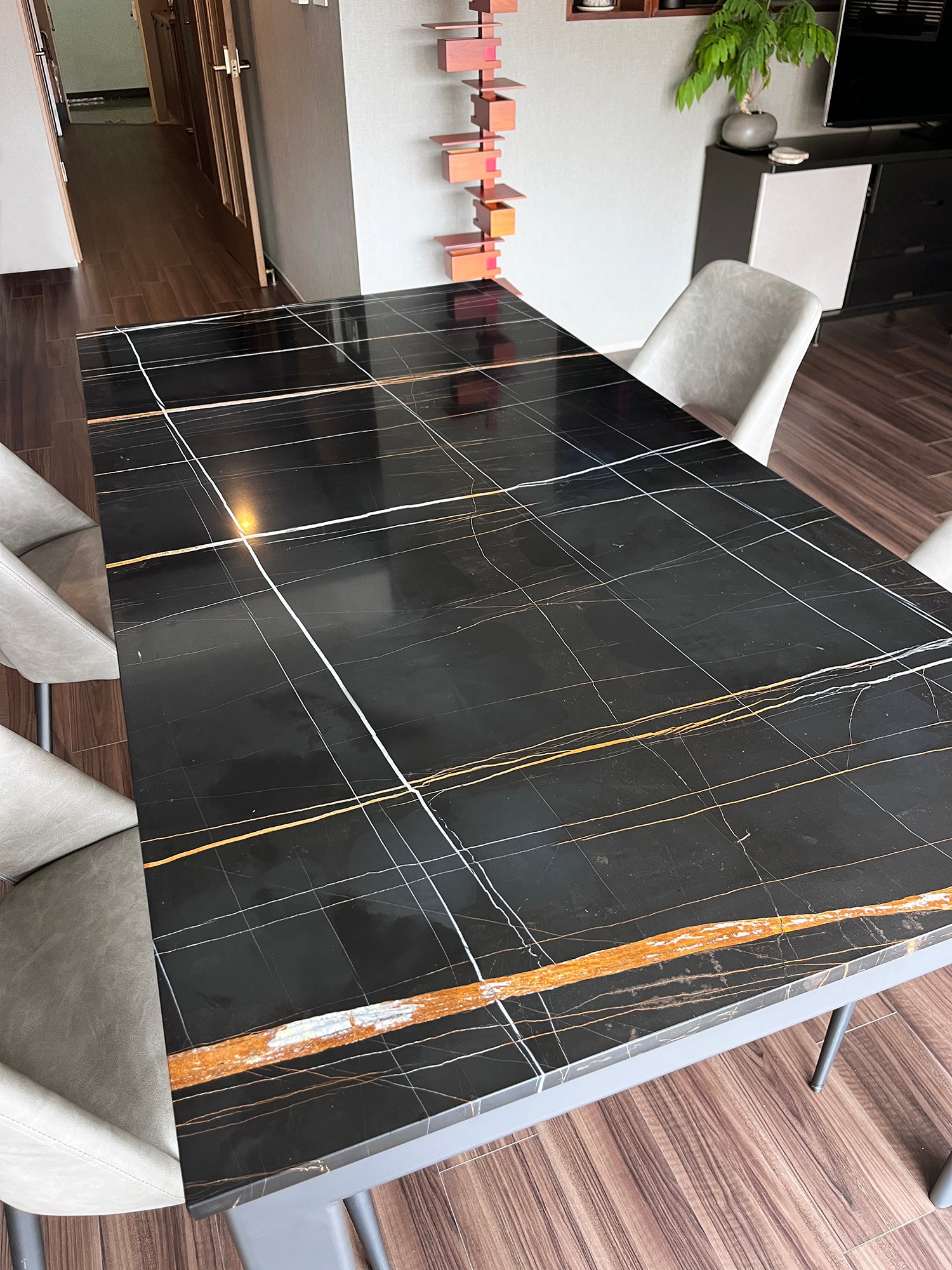 希少な漆黒の大理石天板「サハラノワール(チュニジア産)」のオーダーダイニングテーブルを納品いたしました。